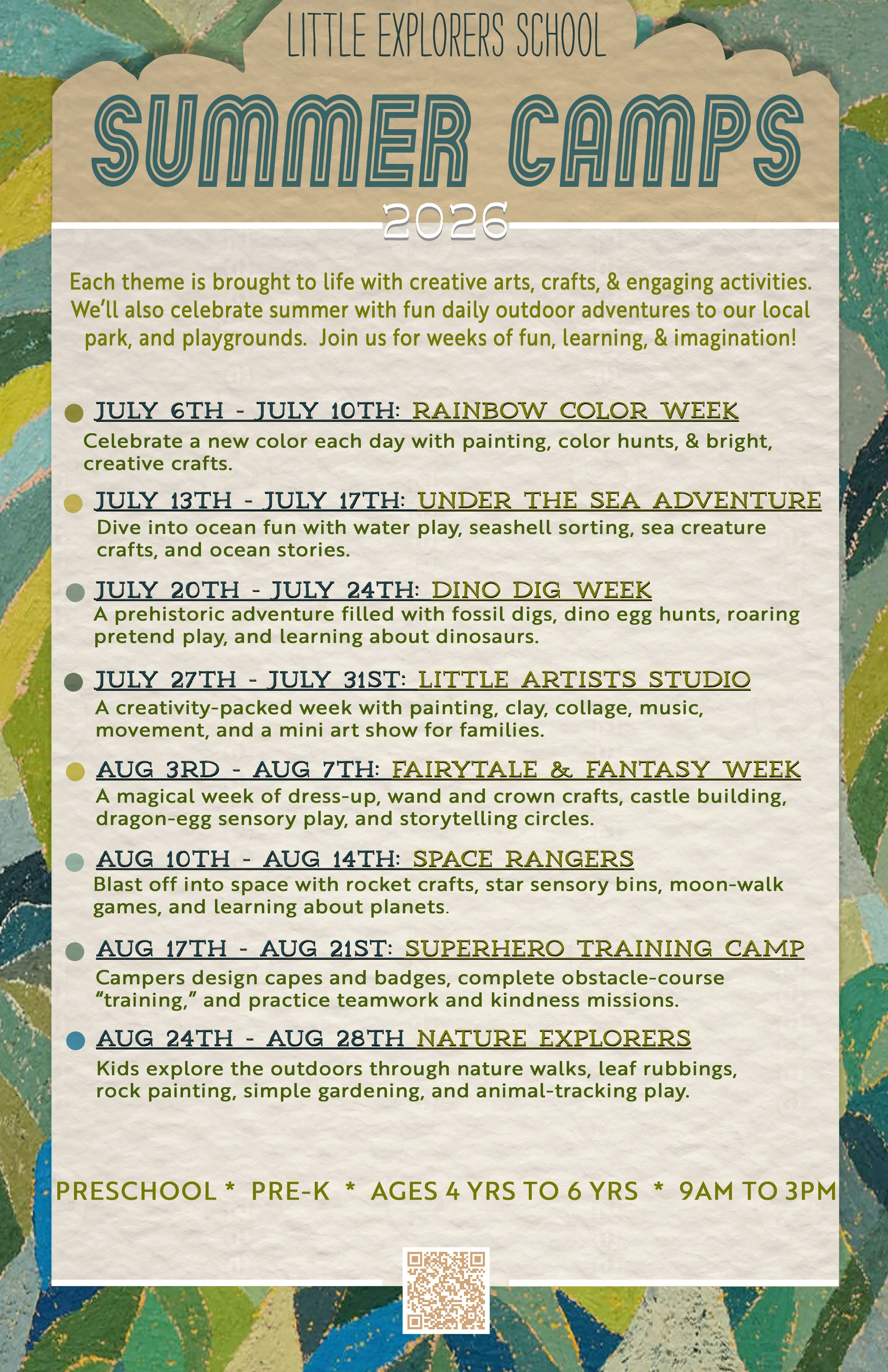 We are happy to announce that Little Explorers will be offering two Summer Camps in 2026!
